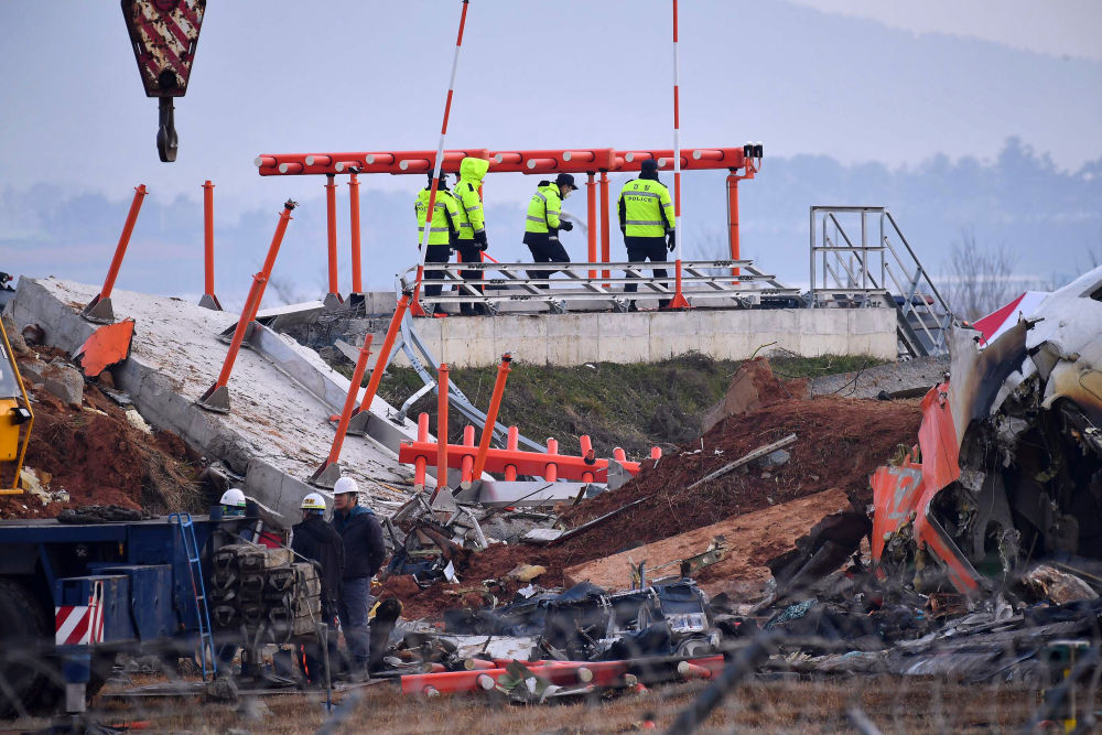 2024年12月30日,看望东谈主员在韩国务安飞机失事现场责任。新华社发(全休相摄)